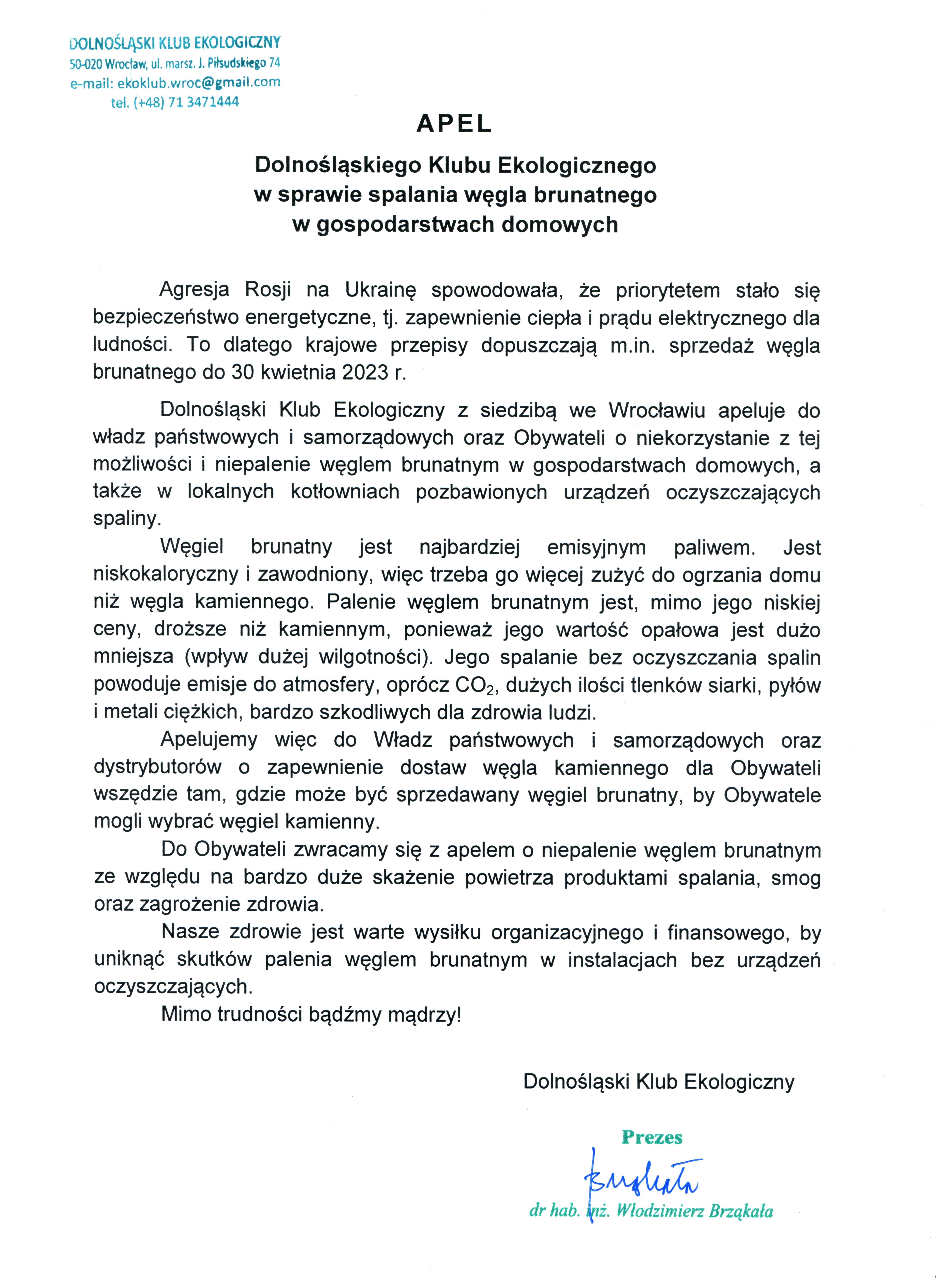 Apel Dolnośląskiego Klubu Ekologicznego